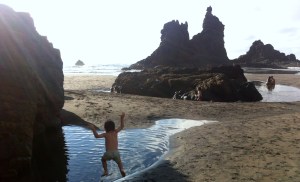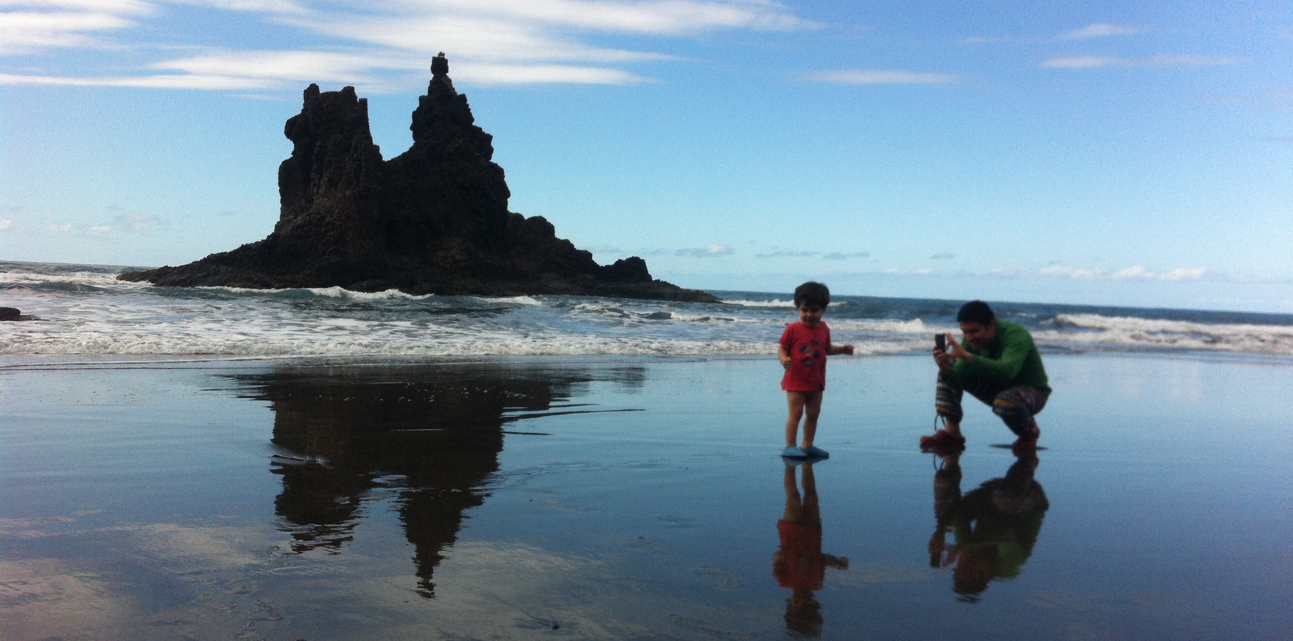 La playa de Benijo tiene ese paisaje agreste, de arenas negras y calientes, con olas salvajes en marea alta, que baten sin conmiseración sobre los roques que le dan nombre. Siglos y siglos arremetiendo contra la lava sólida, más el pasar del viento por las rendijas de sus piedras afiladas, han conformado un paisaje casi lunar. Posee un perfil angosto por arriba y suave en lo bajo, perceptible sólo cuando la marea se retira. Entonces, la playa se vuelve remanso y las charcas sirven de patio de juegos para los niños, que disfrutan sin peligro y a su antojo.
