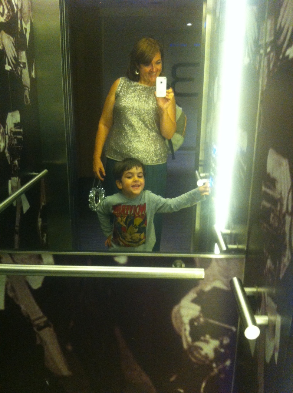 Antes de entrar al ascensor, Hugh me mira, sonríe y hace un gesto de «No ha habido manera» y, aún así pone las palmas hacia arriba, por detrás de su espalda intentando que David choque los cinco. Con la rodilla un poco doblada en gesto de chico gamberrete consigue que David choque los cinco. Se sube al ascensor entre los comentarios de los guardaespaldas y de su publicista que sonríen.