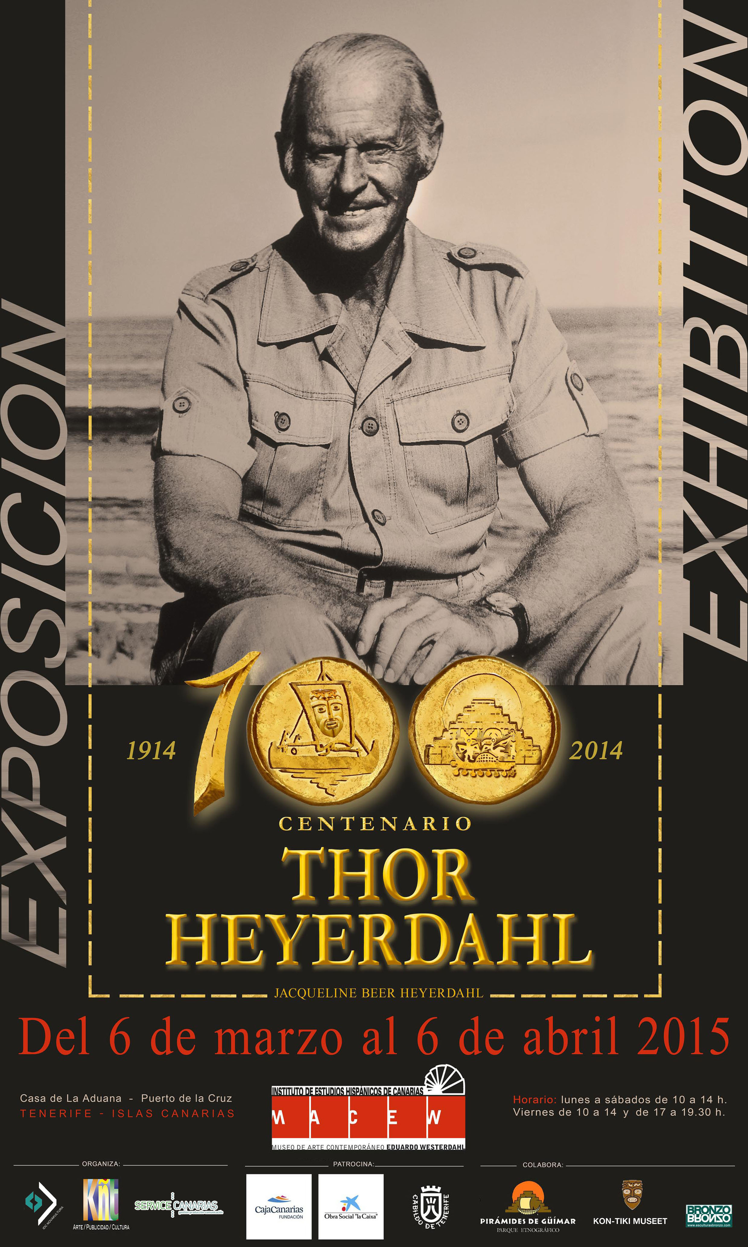 De la mano de su viuda, Jacquelin Beer; y su fotógrafo de cabecera Walter Leonardi, con la colaboración de los museos Kon-Tiki de Noruega y Pirámides de Güímar y con el patrocinio de la Fundación CajaCanarias, la Obra Social “laCaixa y el Cabildo de Tenerife, y coincidiendo con el centenario de su nacimiento, la exposición es un acercamiento a la magnitud de este pionero que abrió caminos al conocimiento de los pueblos primitivos de la Humanidad y cuyo legado siguen estudiando las nuevas generaciones de más de 50 países en todo el mundo. Esta es una exposición didáctica, que usa como material la exhibición de piezas de gran interés, documentos y audiovisuales (sus últimas entrevistas y conferencias) para vertebrar una historia sobre su biografía y las espectaculares hazañas náuticas de Thor Heyerdhal por los océanos del planeta: la expedición KON-TIKI por el Pacífico (1947); las expediciones RA por el Atlántico 1969-70; y la expedición TIGRIS por mar de Arabia, (1978). Asimismo, se realiza un recorrido por sus importantes expediciones antropológicas y arqueológicas (Isla de PASCUA, y pirámides de TUCUME, en Perú), su paso por CANARIAS, y sus museos y fundaciones en todo el mundo.